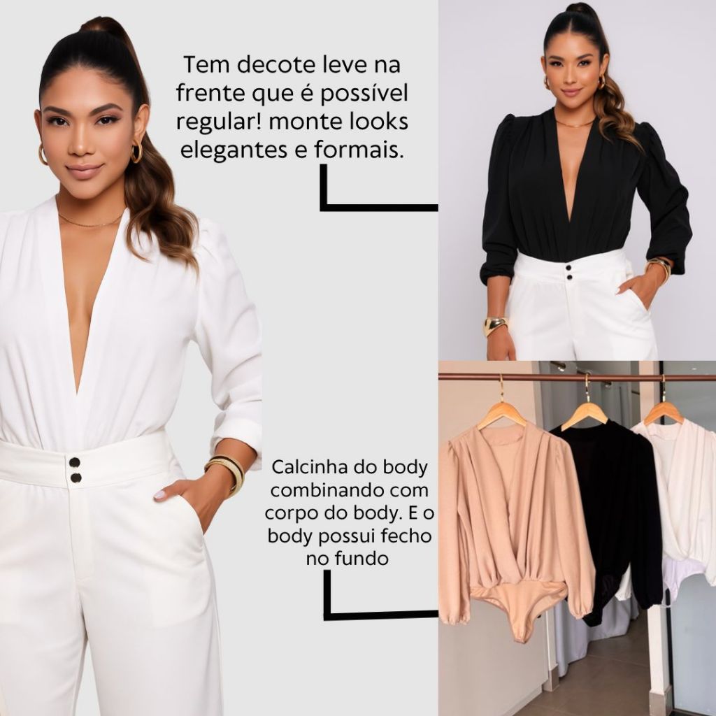 O Body Ibiza é a escolha ideal para quem busca um visual elegante, moderno e com acabamento impecável. Confeccionado em crepinho liso (sem elastano), ele oferece caimento suave e sofisticado, perfeito para compor looks delicados e estilosos.