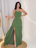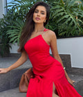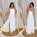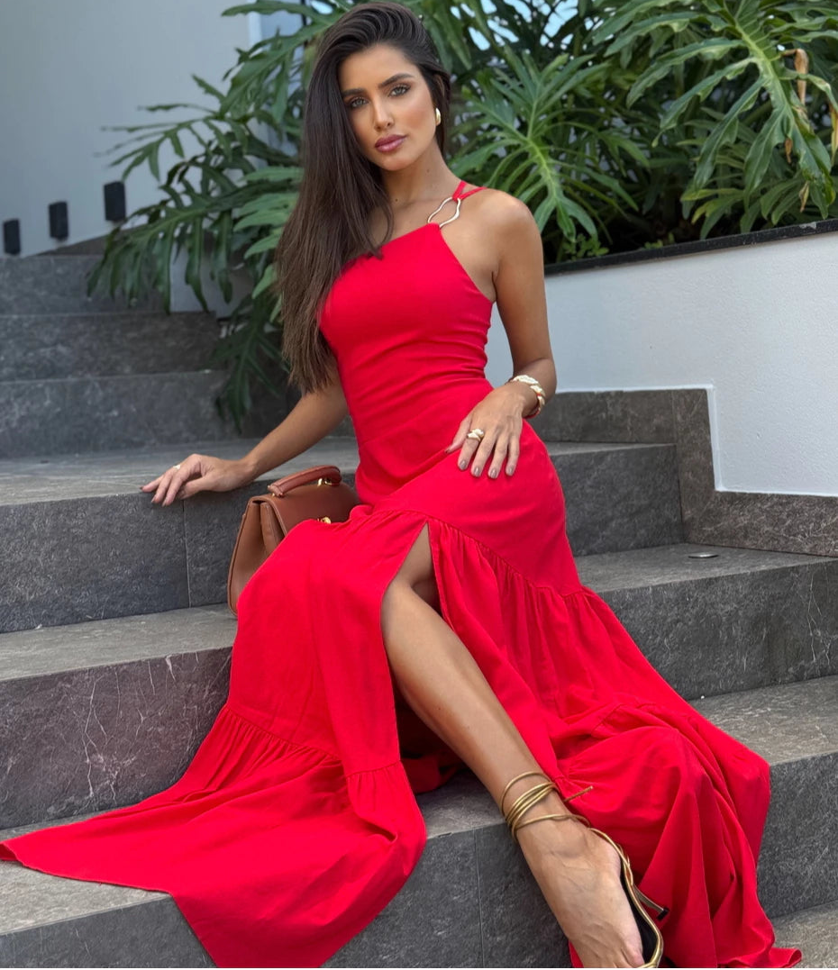 O Vestido Longo Feminino com Fenda Lateral, perfeito para festas, casamentos, jantares e ocasiões especiais. Feito em tecido dunas, ele tem caimento leve e sofisticado, valorizando a silhueta sem marcar.
